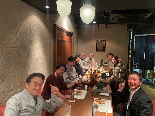 1月入社の森田さんの「歓迎会」と長~い現場がやっと終わった「お疲れ様会」を美味しいふぐ料理で歓迎と労いを行いました。 森田さん(左奥2番目)は、まだちょっと緊張気味でした。